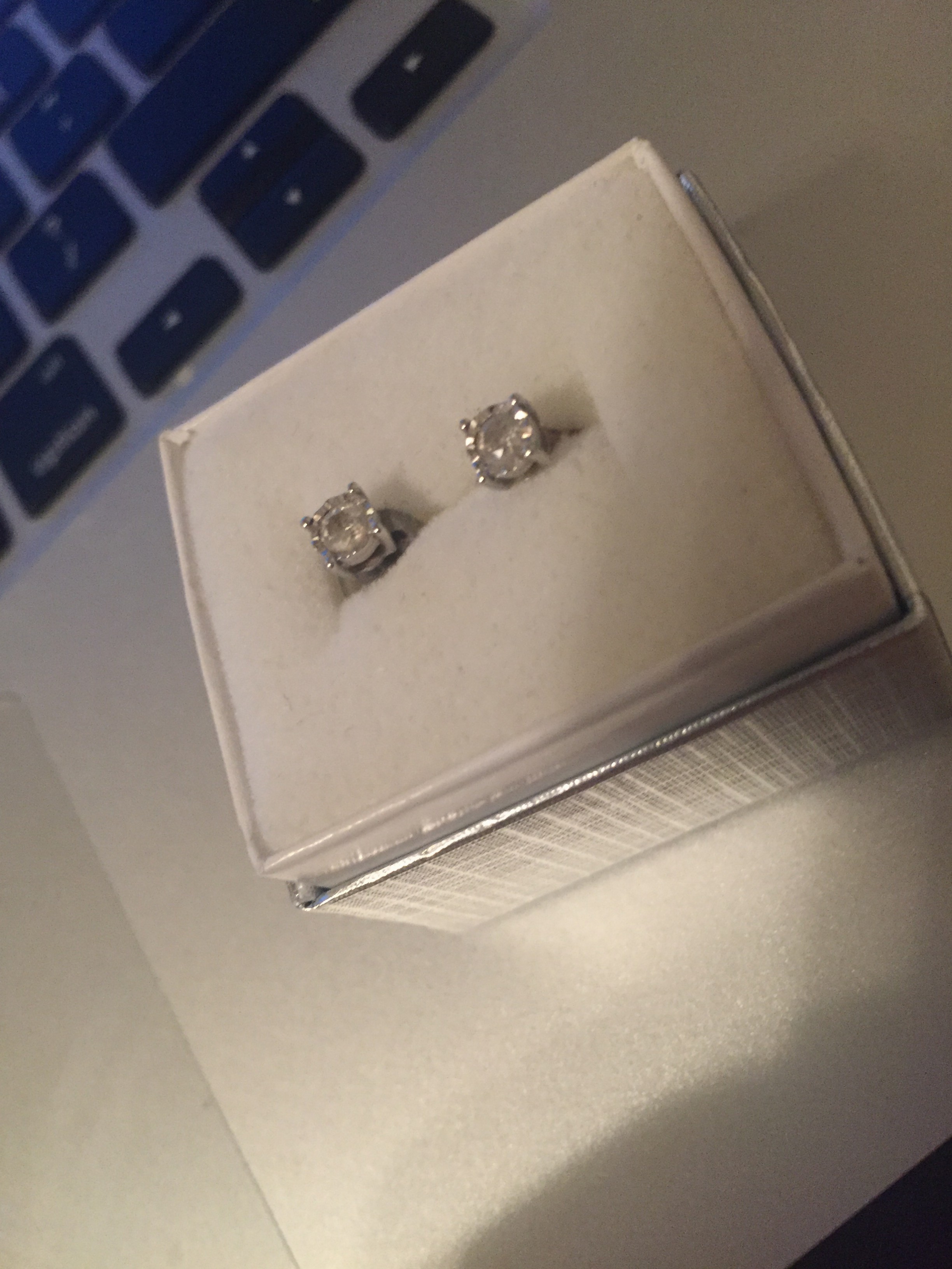 Simple 1/4 carat diamond earrings, perfect for everyday wear and are completely comfortable, white gold with diamonds.
