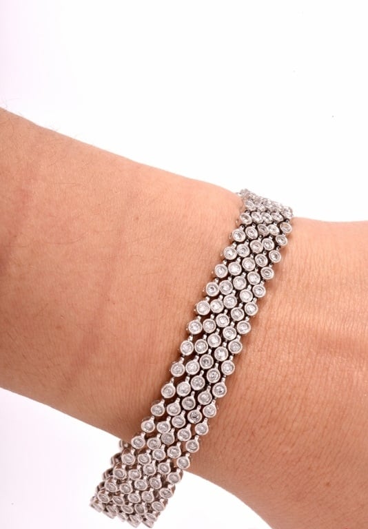 This is an intensely sparkling Genuine Diamond five strand tennis bracelet crafted in solid 18K white gold.