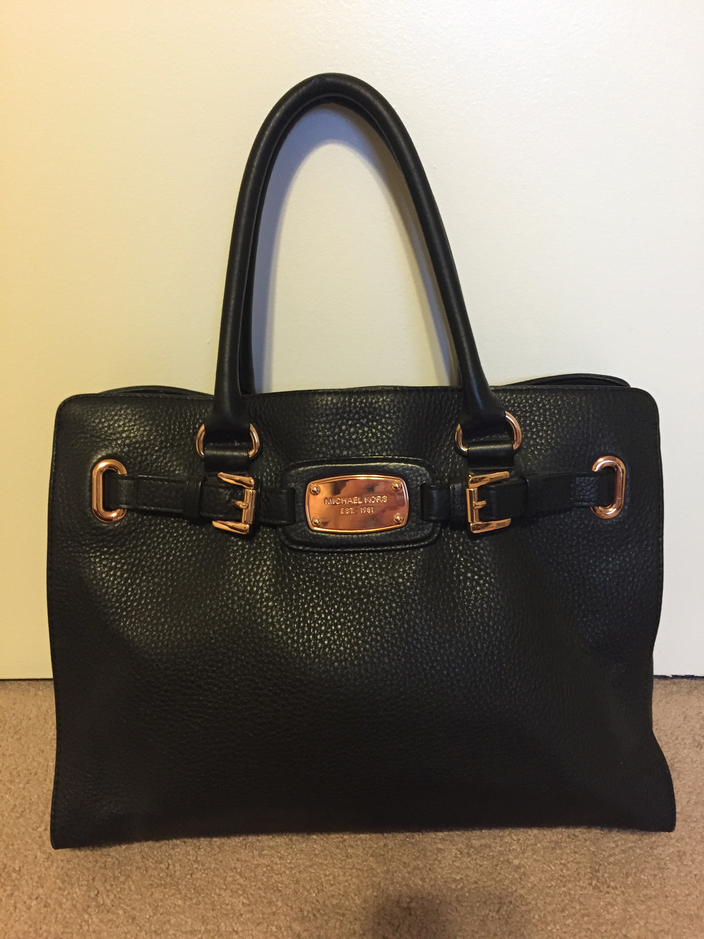 Beautiful black leather Michael Kors purse with rose gold hardware. This purse is a great size and is in wonderful shape.